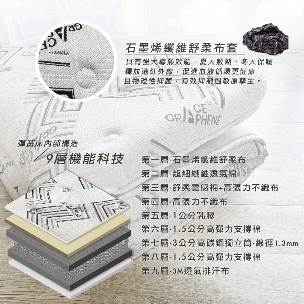 ●品名 : 10cm石墨烯乳膠獨立筒床墊